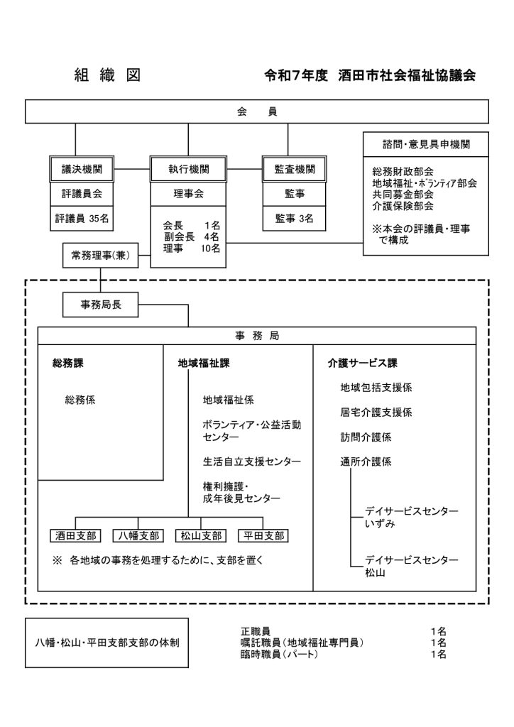 組織図 酒田市社会福祉協議会 総務課 TEL:0234-23-5765 FAX:0234-24-6299 ※窓口・お電話受付時間:平日8:30~17:15 » メールフォームでのお問い合わせ » 所在地・交通アクセス
